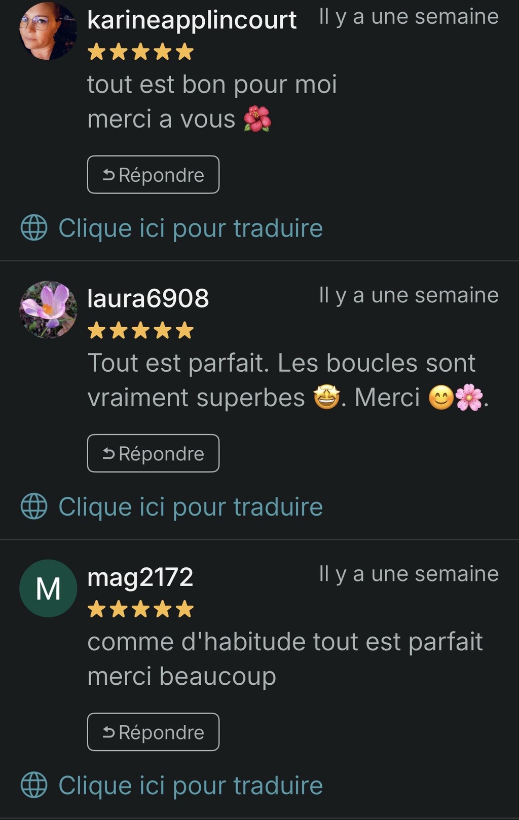 ❓ Les créoles rouillent-elles ?Non, elles sont en acier inoxydable, résistantes à l’eau.
