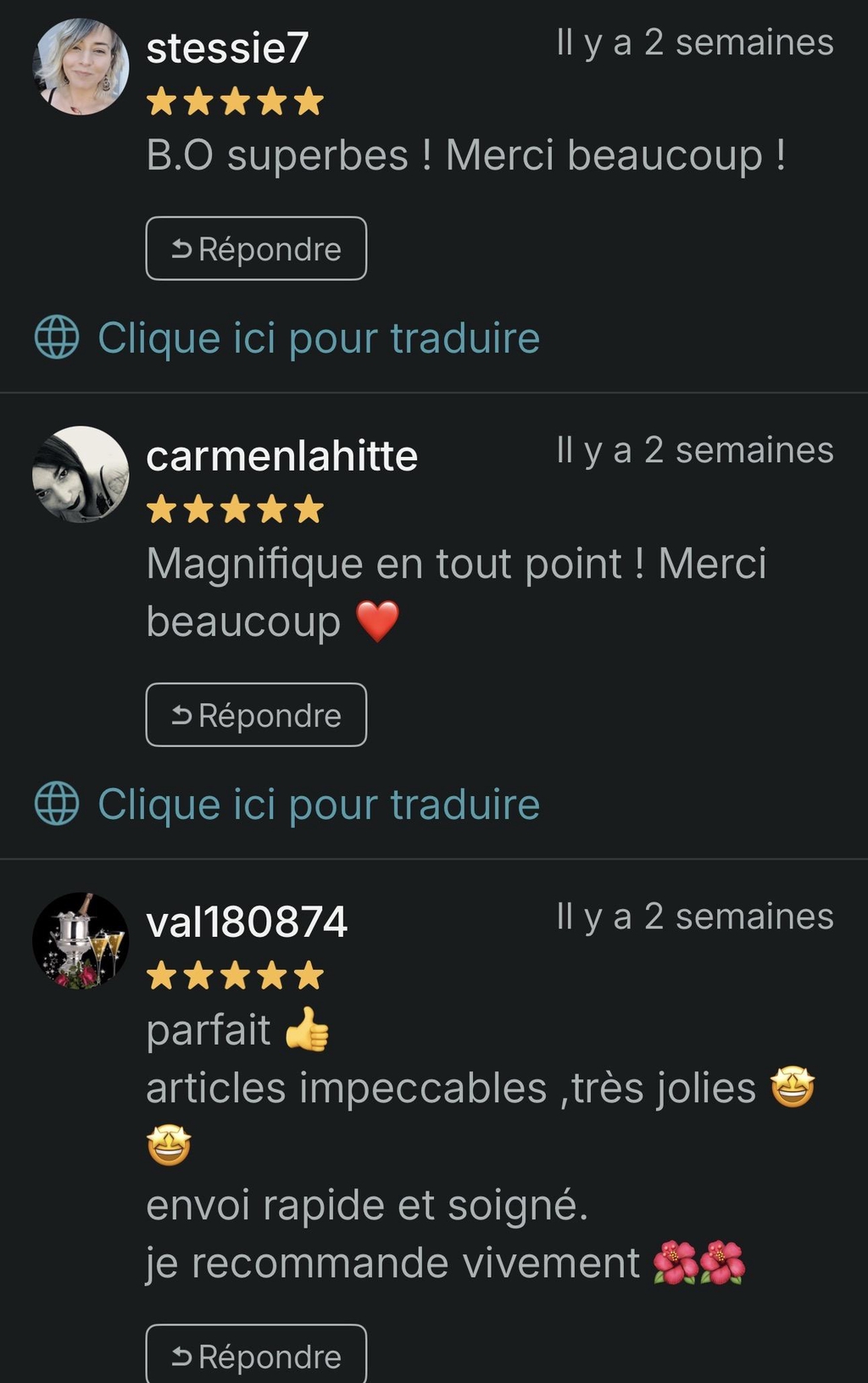❓ Les bijoux sont-ils faits main ?Oui, chaque modèle est fabriqué artisanalement.