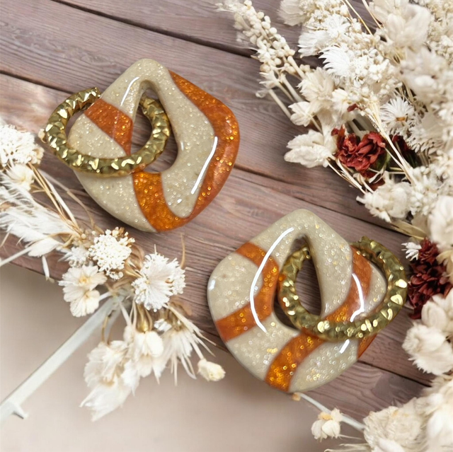 pampilles interchangeables beige et orange en argile & résine légère